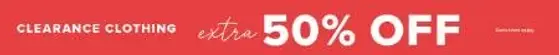 Hurry in and get an extra 50% off clearance clothing in store for a limited time.