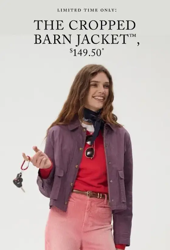 Limited time only! Shop in store and get the Cropped Barn Jacket now for only $149.50.