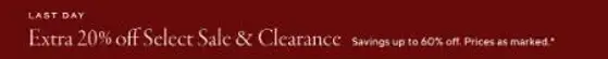 Hurry in and get an extra 20% off select sale & clearance items in store for a limited time.