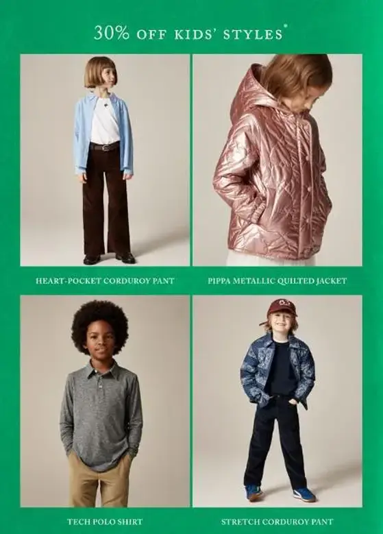 Don't miss out! Shop in store and get 30% off kids' styles.