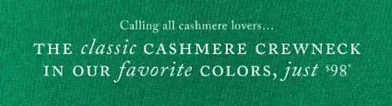 Shop in store and get the classic cashmere crewneck now for just $98.