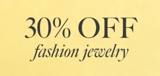 Don't miss out! Shop in store and get 30% off fashion jewelry.