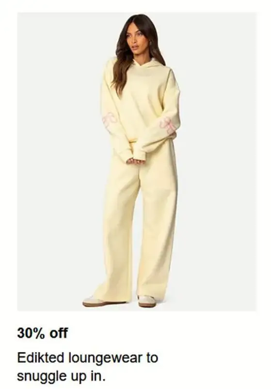 Limited time only! Shop in store and get 30% off Edikted loungewear.